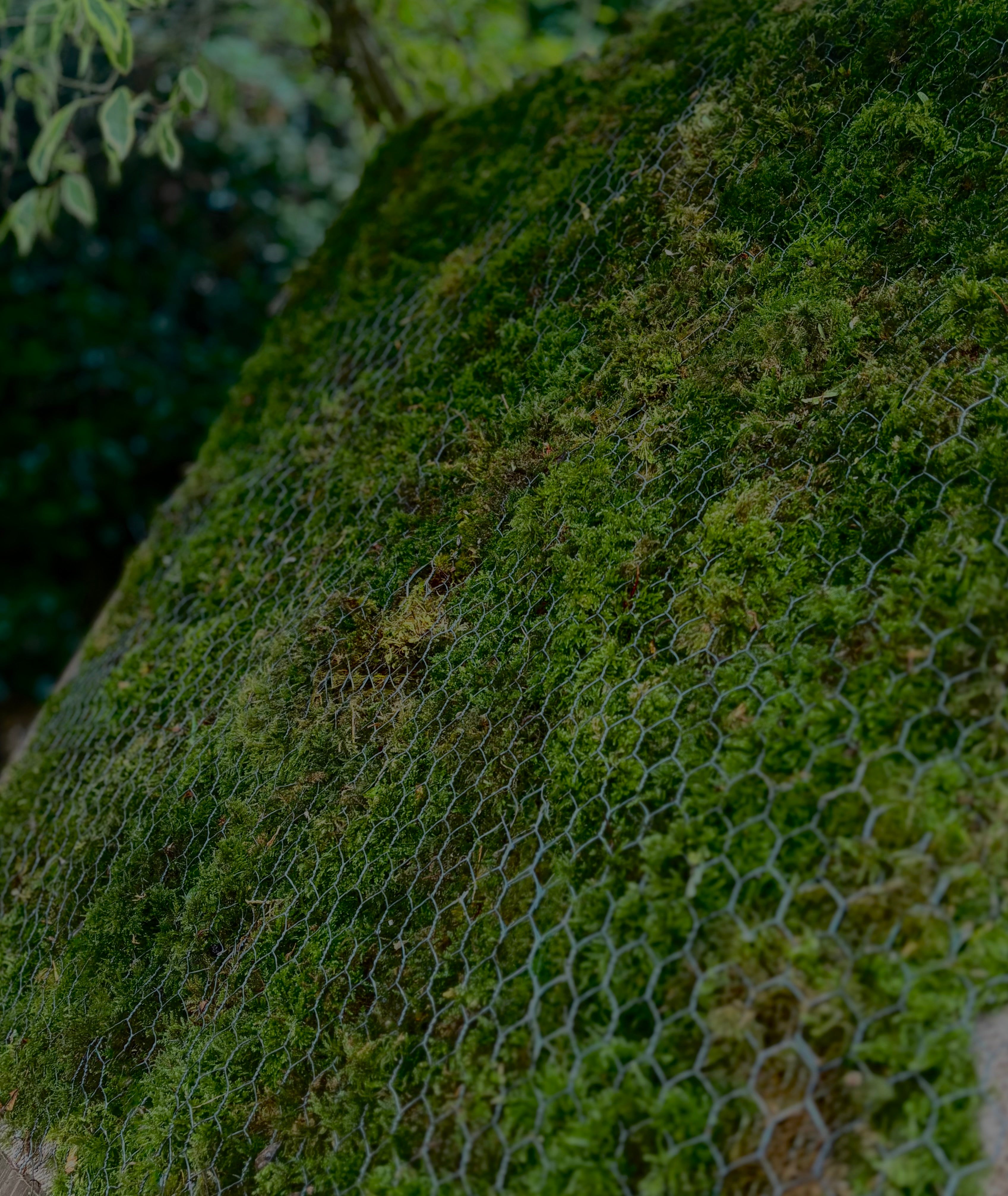 We Grow and maintain sustainable moss panels made from recycled wood pallets and chicken wire. Kept entirely on our own land so there is no shipping emissions or having to maintain the panels yourselves.